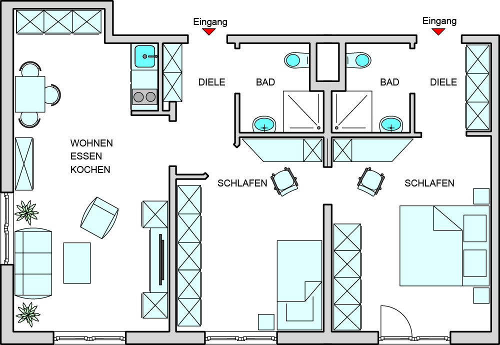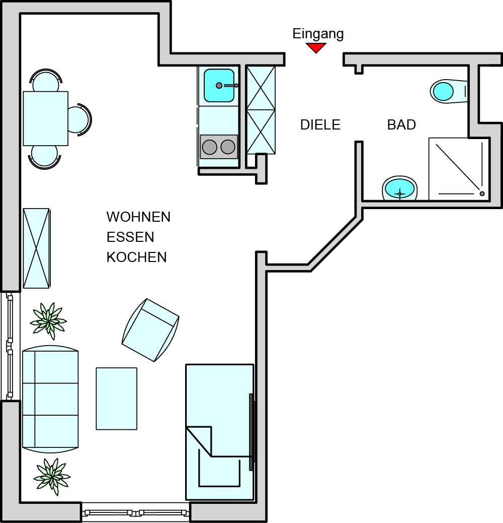Bei der dargestellten Einrichtung handelt es sich lediglich um Einrichtungsvorschläge.